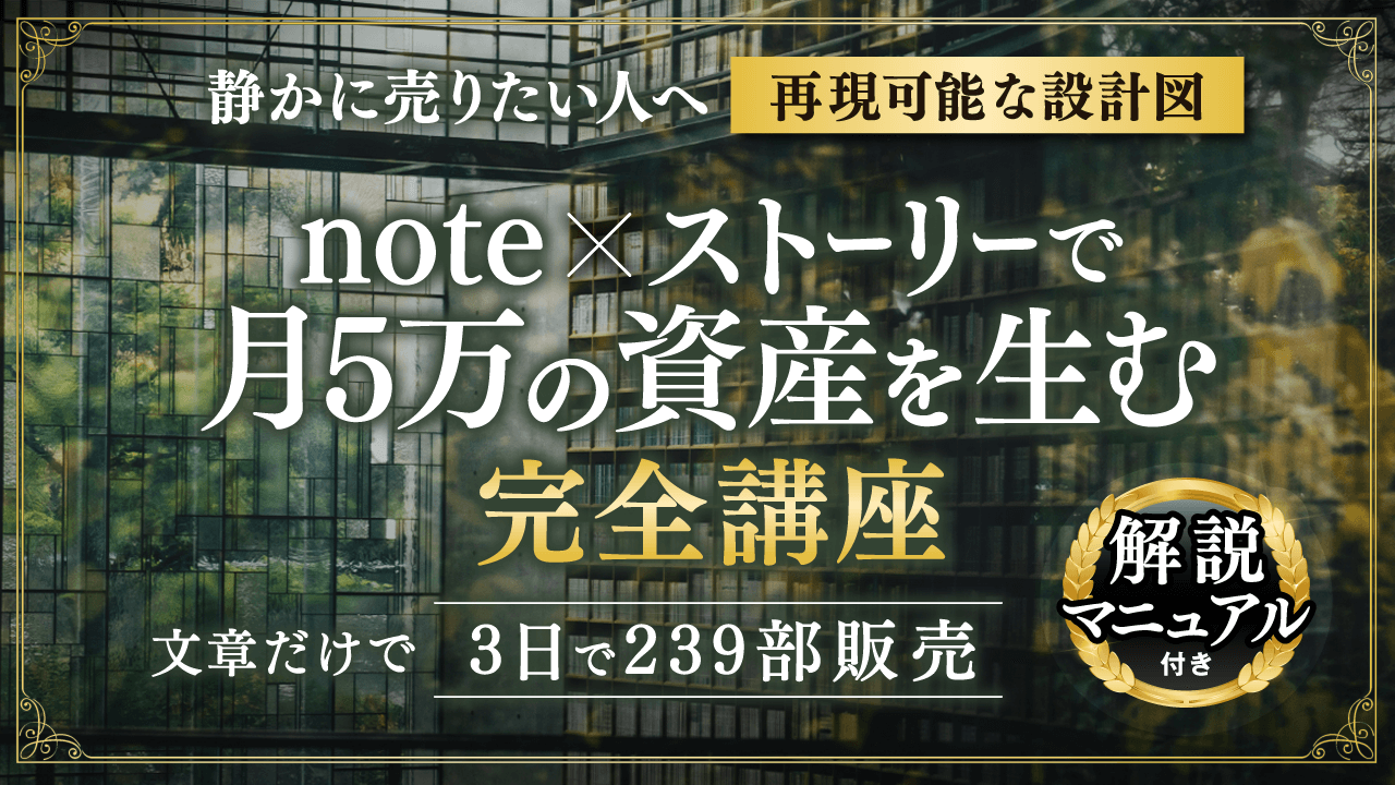 【PDF】note×ストーリーで月5万の資産を生む完全講座|3日で239部の再現戦略【7ステップ構成】(総文字数6万字以上)